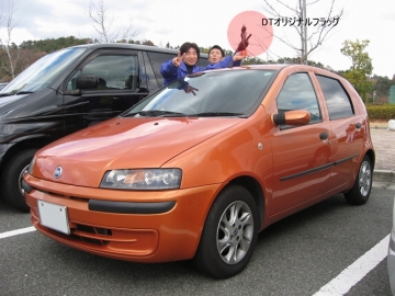 | マイカーにDTオリジナルミニフラッグを付けて球場入り♪ご満悦な田中さんと田井さん♪(^^) DT-GOODS作成委員会はコチラ |